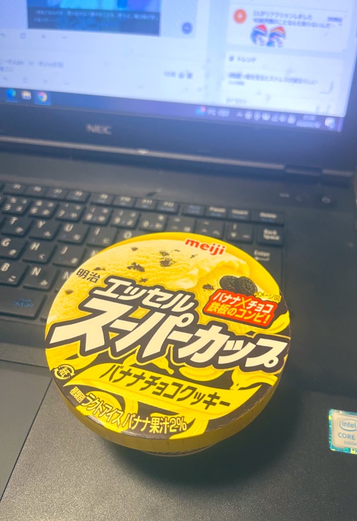 チョコクッキー入りとありますが、同じスーパーカップの紅茶オレとかクッキーバニラ味に入ってるクッキーと比べると、小粒でザクザク感は少なめです。
